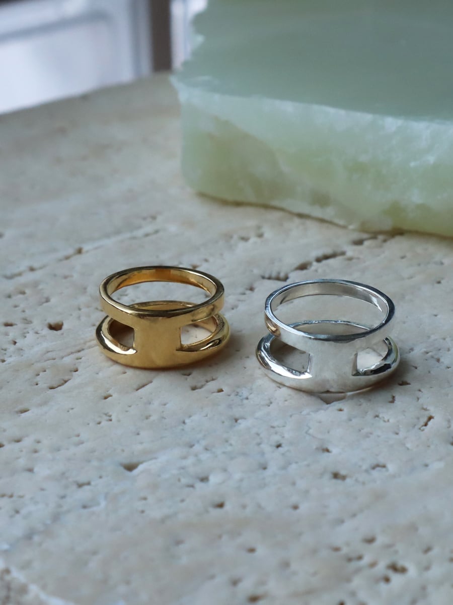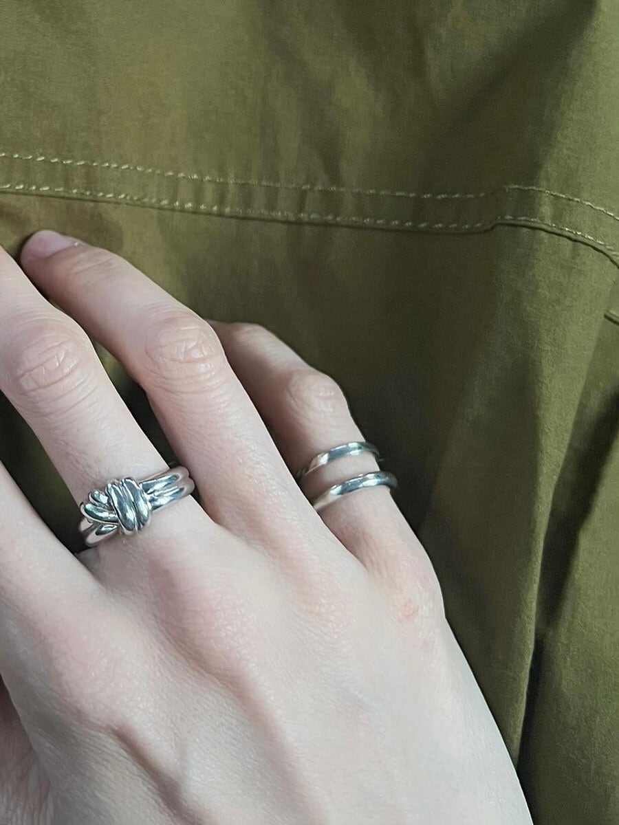 2本のリングを重ね付けしているようなデザインが特徴のピンキーリング。