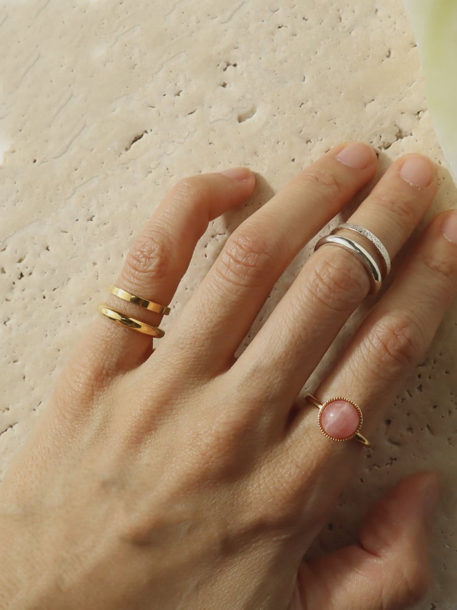 甲丸リングと平打ちリング、2本バランスよく組み合わせて