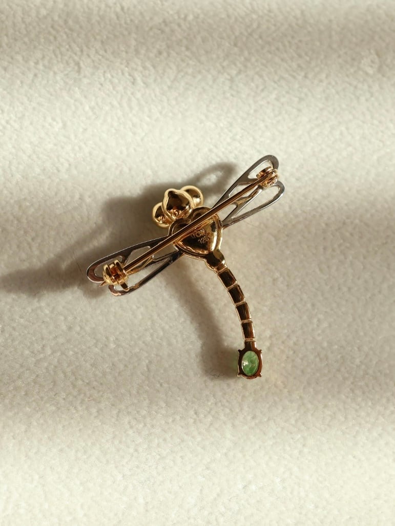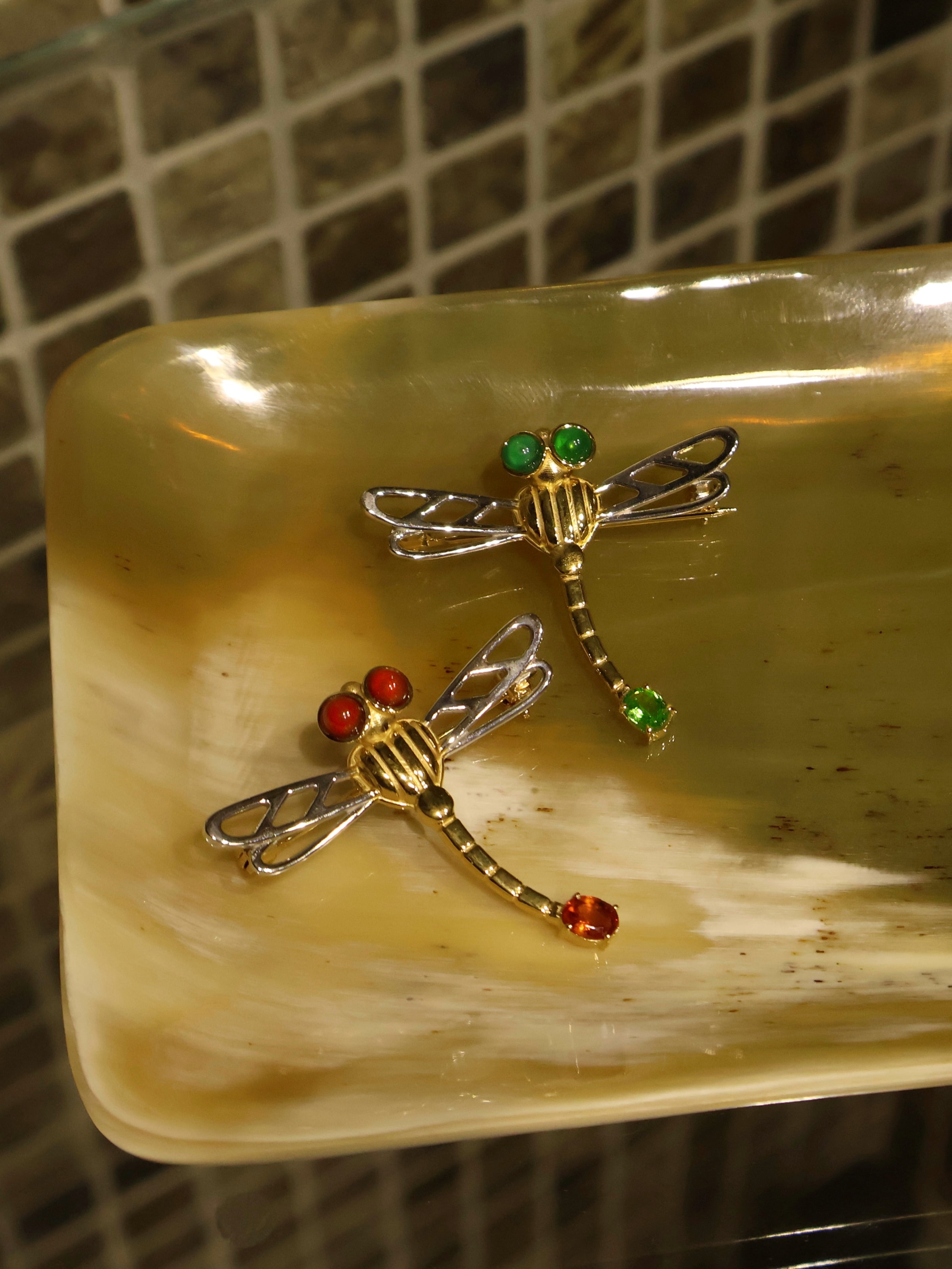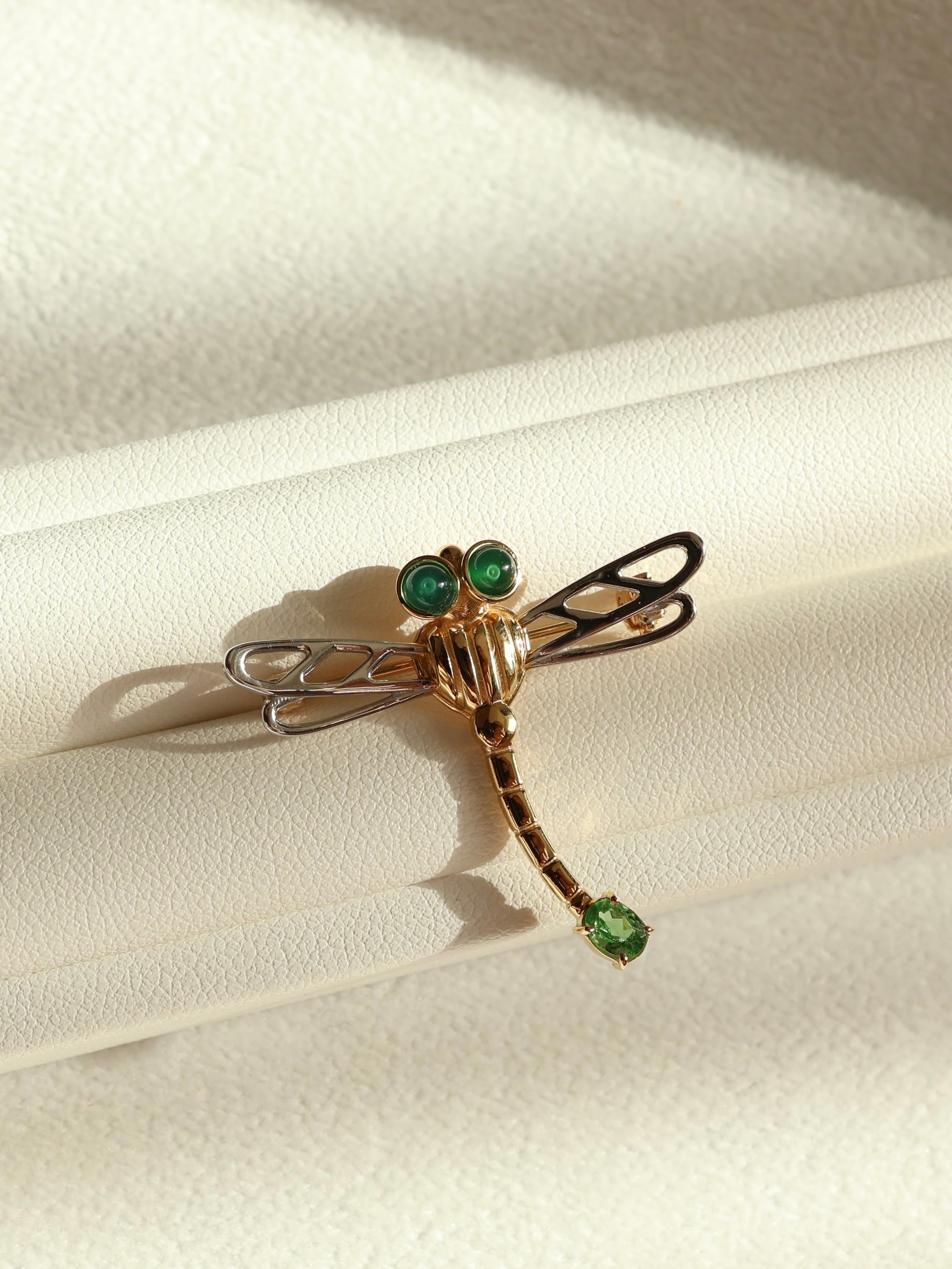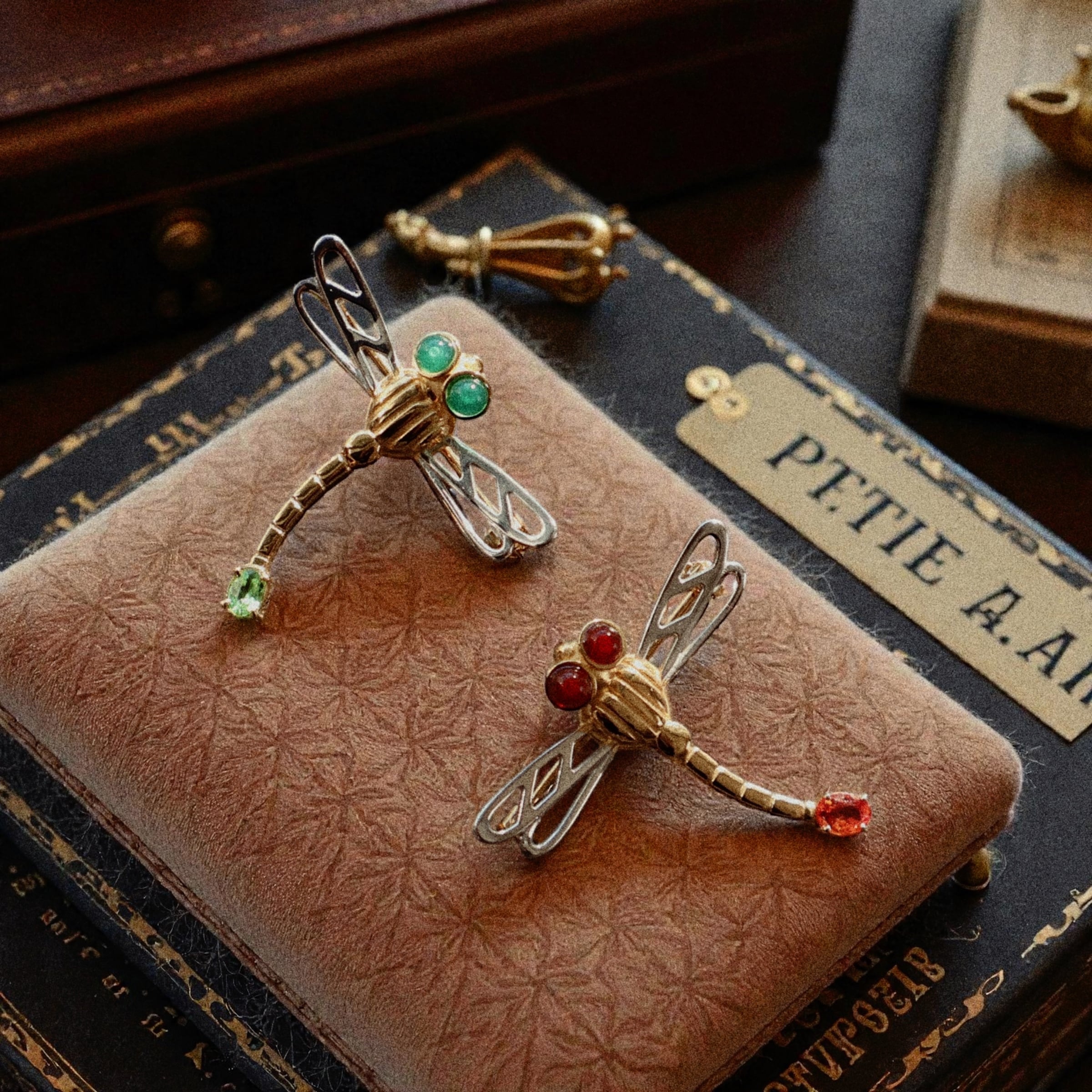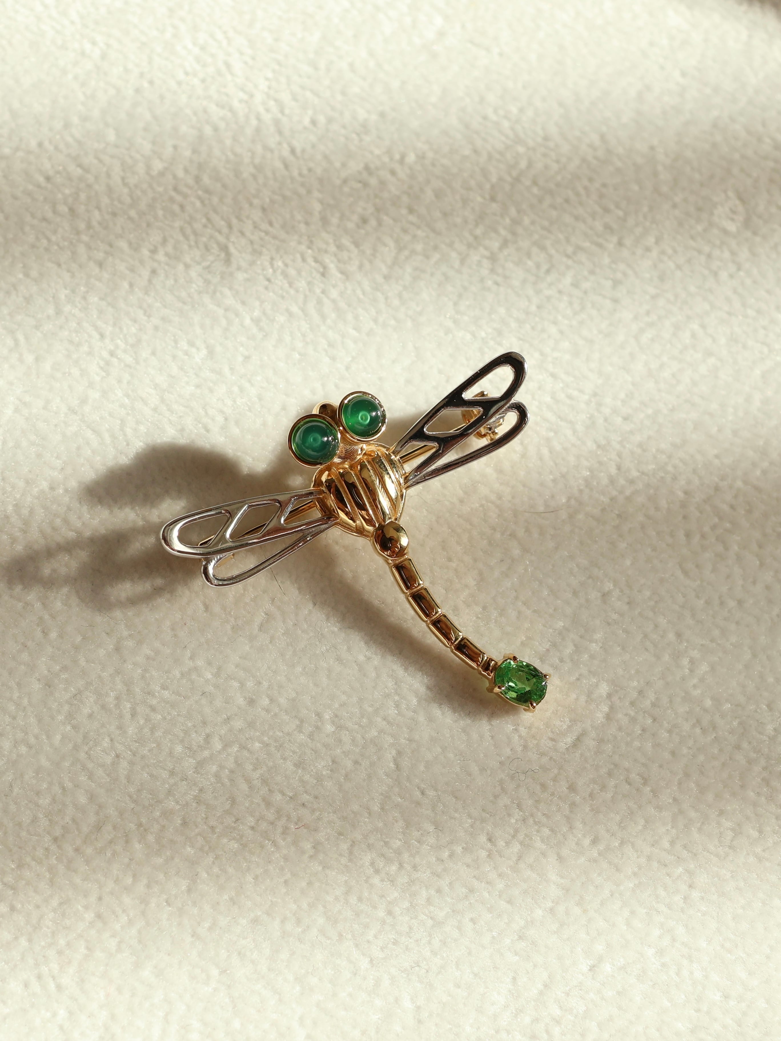 襟元や胸元に、キラキラとした小さな宝石の虫たちがとまっているような、そんなスタイルをイメージしてデザインしたトンボのブローチ。