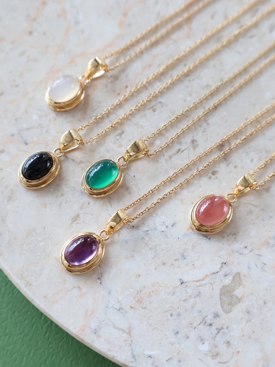 胸元に、光を含んだキャンディのような天然石をひと粒。
